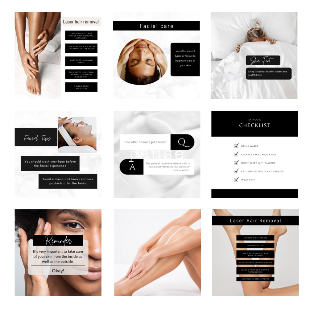 24 instagram post for your Beauty Spa, services descriptions, Q&A, etc